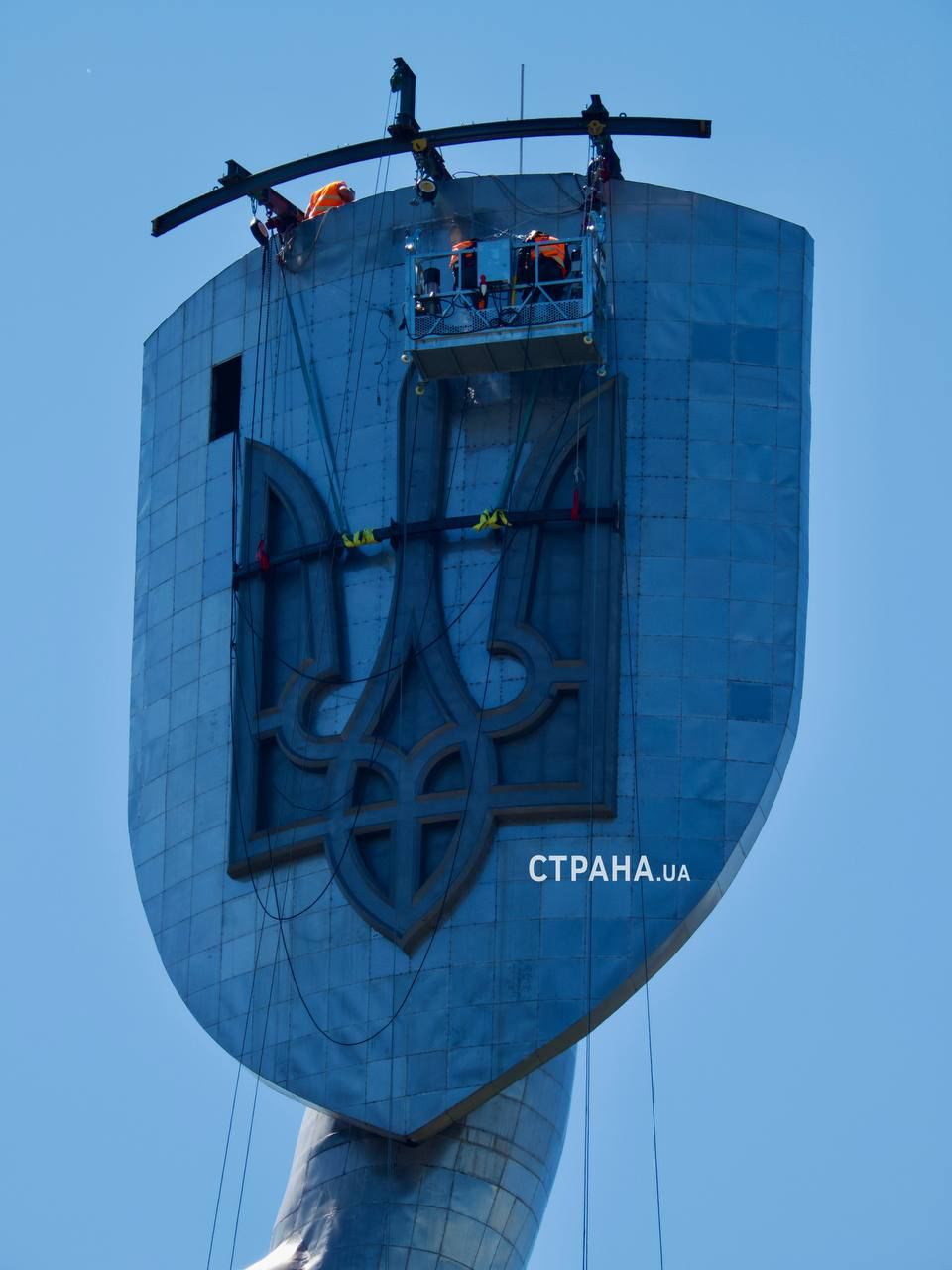 По состоянию на понедельник, 14 августа, монтаж тризуба на монументе "Родина-мать" завершен.