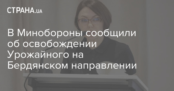 Замминистра обороны Анна Маляр заявила об освобождении села Урожайное на Времьевском выступе.