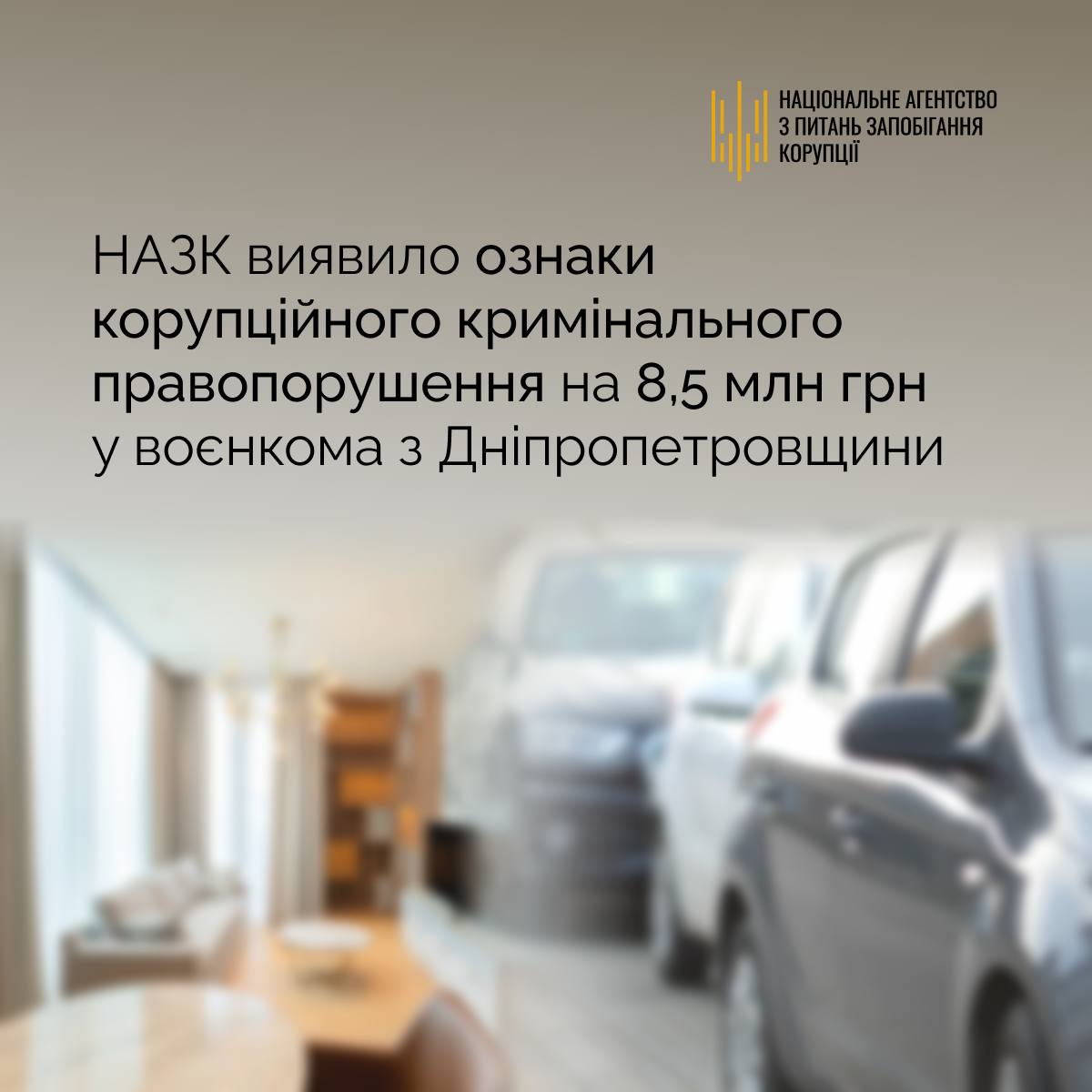 НАПК выявило признаки незаконного обогащения на почти 8,5 млн грн у экс-начальника Днепропетровского облвоенкомата Анатолия Пикала по результатам мониторинга образа жизни.