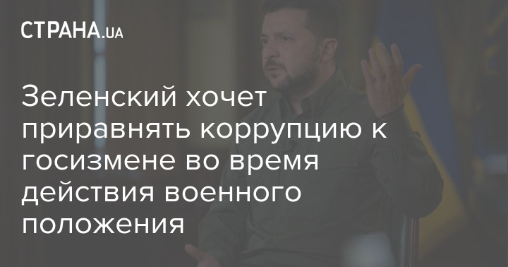 Президент Украины Владимир Зеленский заявил, что предложит Верховной Раде приравнять коррупцию к государственной измене на период действия военного положения.