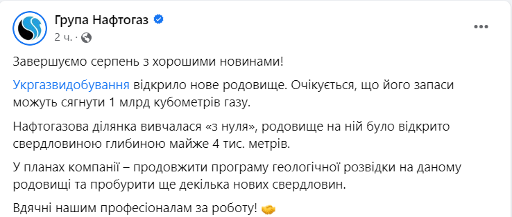 "Укргаздобыча" открыла новое месторождение газа. Фото: Facebook