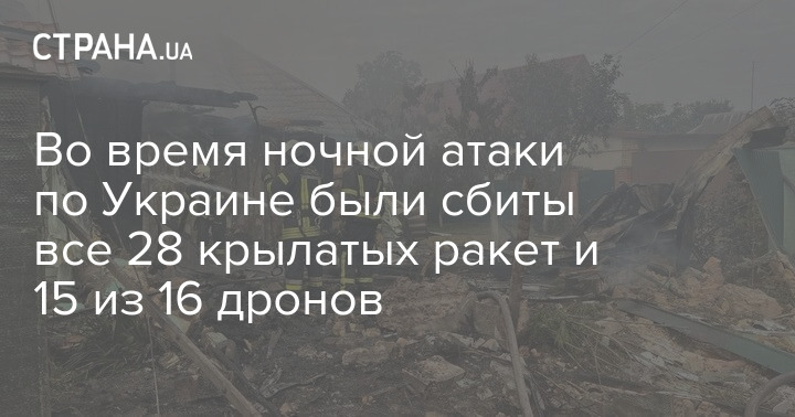 "Силами и средствами противовоздушной обороны Воздушных Сил во взаимодействии с ПВО Сил обороны Украины уничтожено все 28 крылатых ракет и 15 ударных БПЛА типа Shahed-136/131", - написал Залужный.