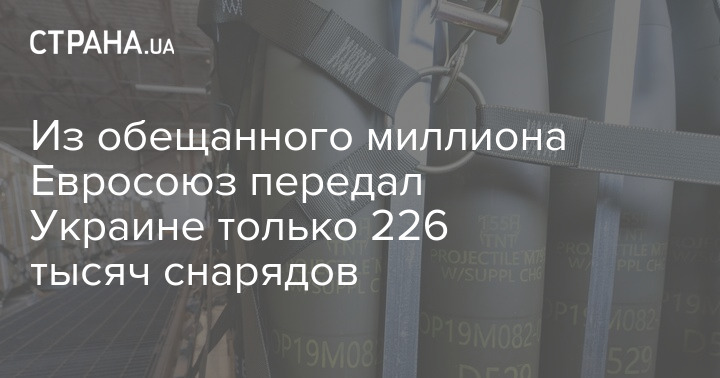 Из обещанного миллиона Евросоюз передал Украине только 226 тысяч снарядов