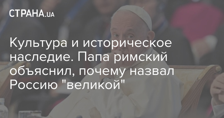 Папа римский Франциск пояснил, что слова о "великой матушке России", за которые он подвергся критике со стороны Украины, касались богатой культуры и исторического наследия РФ.