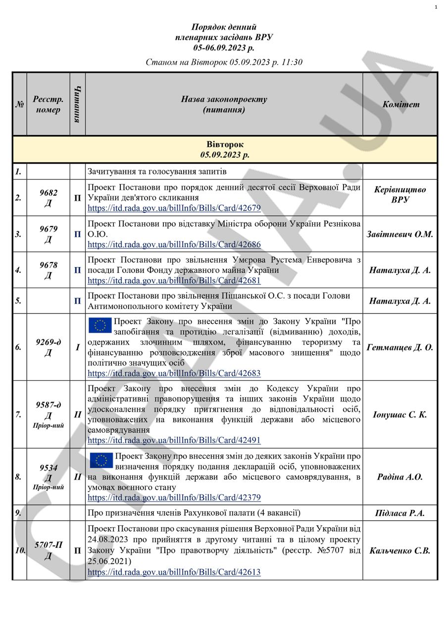 Об этом свидетельствует предварительная повестка Рады, которая оказалась в распоряжении "Страны".