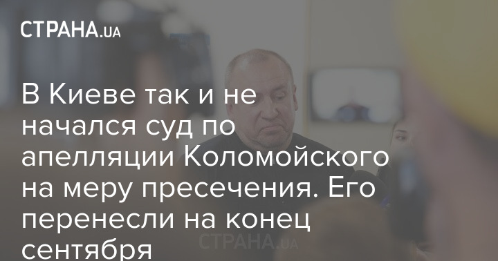 В Киеве так и не началось запланированное на 11:20 судебное заседание по рассмотрению апелляционной жалобы на решение Шевченковского суда по мере пресечения для бизнесмена Игоря Коломойского. Его перенесли на конец сентября.