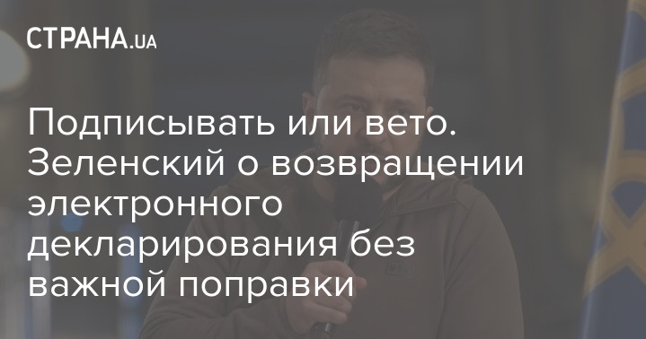 Подписывать или вето. Зеленский о возвращении электронного декларирования без важной поправки