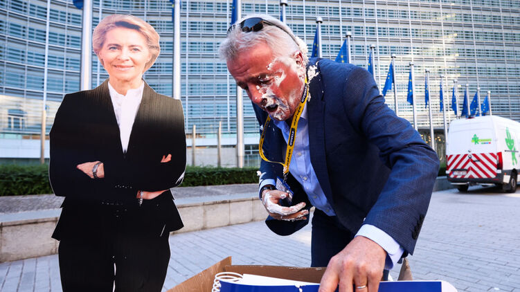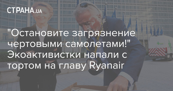 В Брюсселе экоактивистки бросили кремовый торт в главу ирландской авиакомпании Ryanair Майкла О'Лири в знак протеста против глобального потепления.