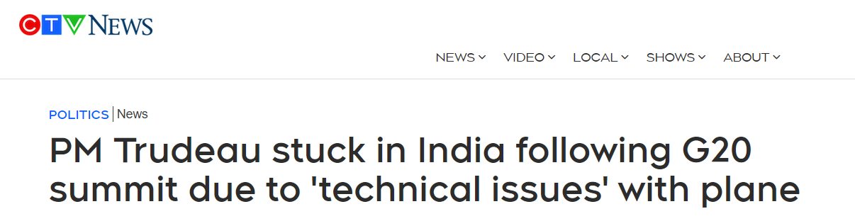 Премьер-министр Канады Джастин Трюдо не смог вылететь из Индии после участия в саммите стран G20 ("Большой двадцатки") из-за технической неисправности самолета.
