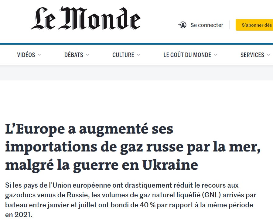 А минувшей зимой СМИ писали, что Германия и другие страны ЕС продолжают активно закупать российский сжиженный природный газ. Причем закупки российского СПГ даже увеличились в сравнении с 2021 годом.