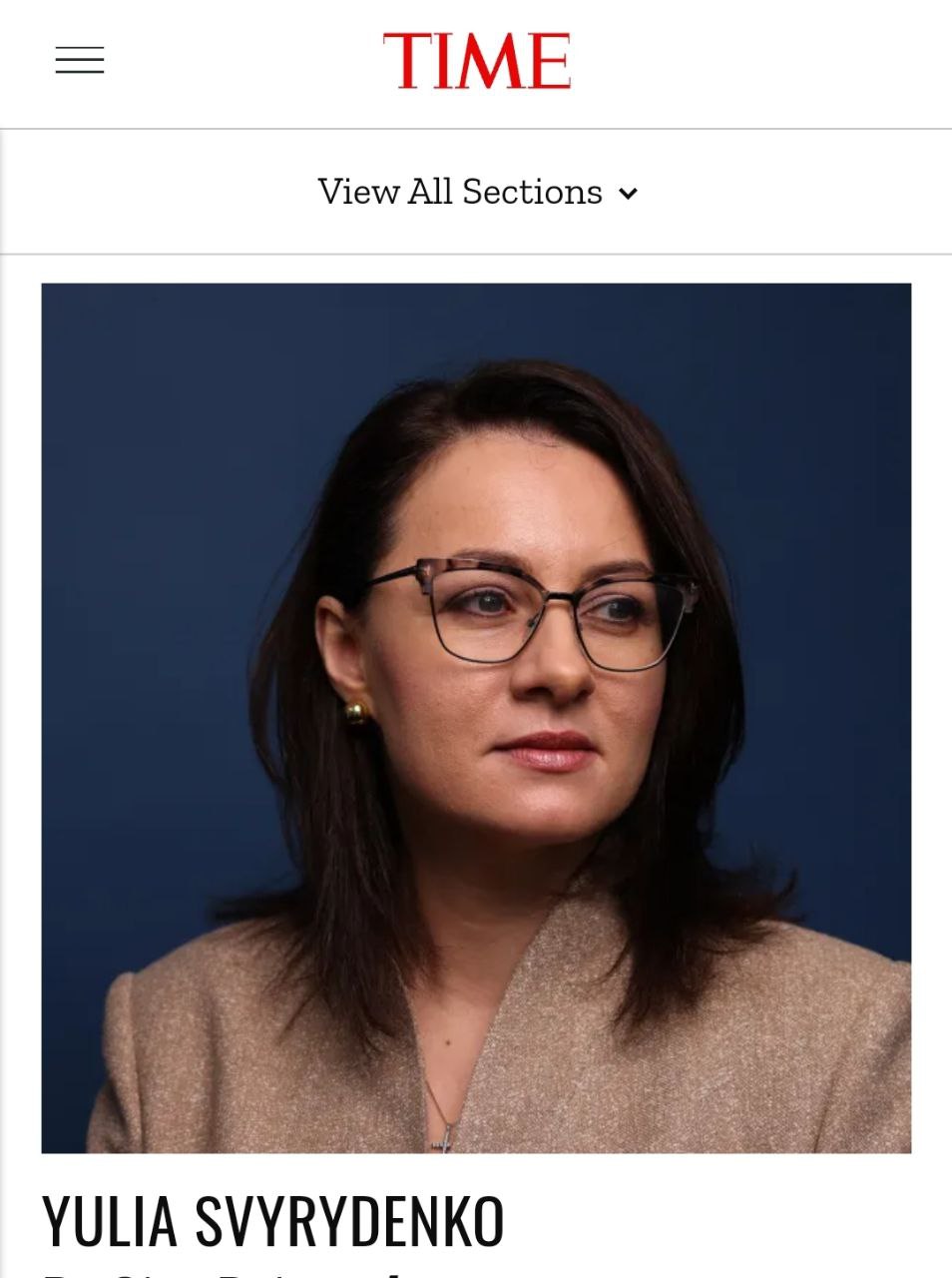 В списке TIME100 Next, разделённом на несколько групп, Свириденко оказалась в "Лидерах" вместе, например, с председателем Европарламента Робертой Метсолой и главой правительства Шотландии Хамзой Юсафом. Короткая статья-характеристика Свириденко написана главой Министерства торговли США Джиной Раймондо.