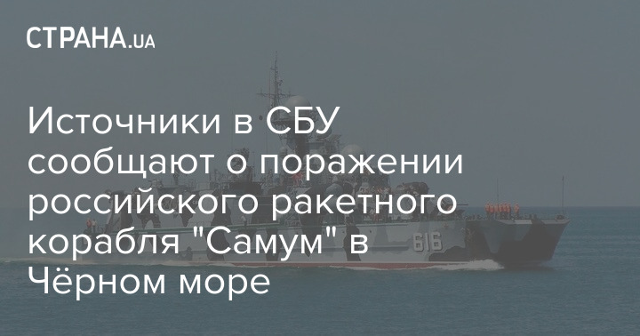 Украинские СМИ со ссылкой на источники в СБУ сообщают, что водный дрон "Морской малюк" поразил российский ракетный корабль "Самум".