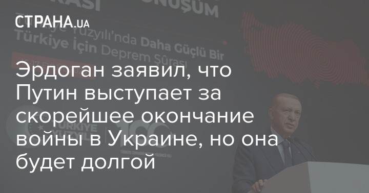 "Я говорю это только с его слов. Путин хочет, чтобы эта война закончилась как можно скорее. Это то, что он сказал, и я верю его словам", - сказал Эрдоган.