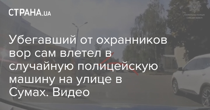 Убегавший от охранников вор сам влетел в случайную полицейскую машину на улице в Сумах. Видео