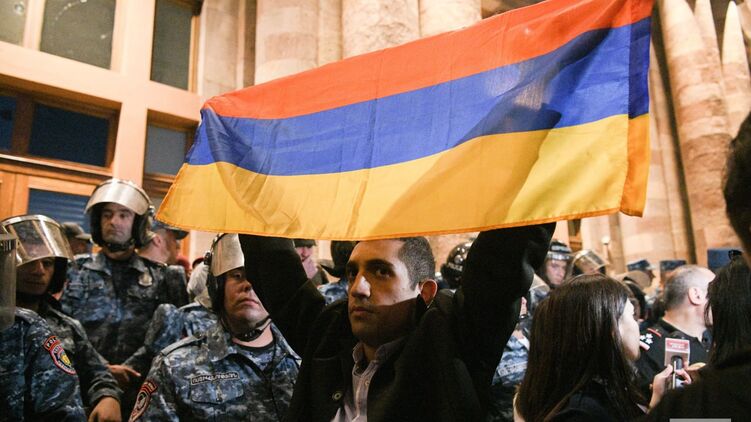 В столице Армении у здания кабинета министров начались стычки полиции и протестующих против действующего правительства. В силовиков летят камни и бутылки.