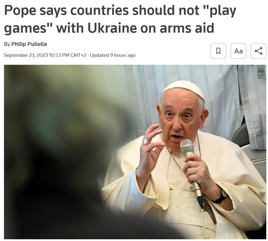 Папа Римский Франциск заявил, что война в Украине связана с интересами оружейного бизнеса.