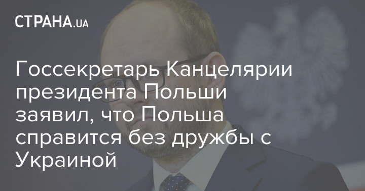 Госсекретарь Канцелярии президента Польши Марчин Пшидач заявил, что Польша "справится" без дружбы с Украиной.