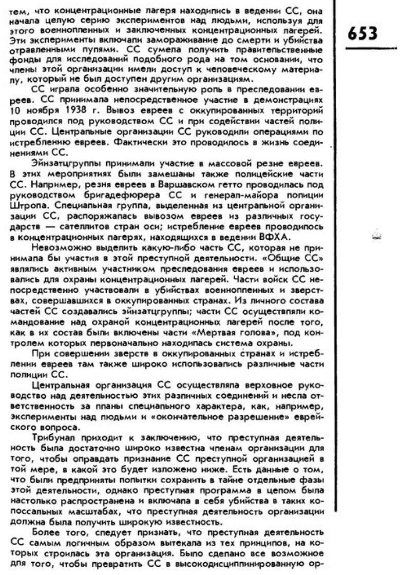 В то же время, как можно увидеть из текста приговора, в этом вердикте осуждается вся СС как организация, без деления на составные части.