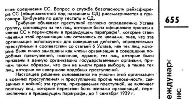 При этом в индивидуальном порядке не каждый эсэсовец может считаться преступником, говорится в приговоре Нюрнбергского трибунала.