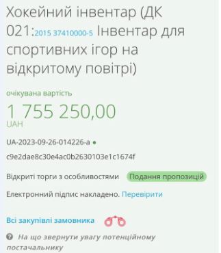 А в находящемся под постоянными обстрелами Херсоне коммунальное предприятие облсовета "Областной центр хоккея" хочет закупить 295 хоккейных клюшек на 1,75 млн грн.