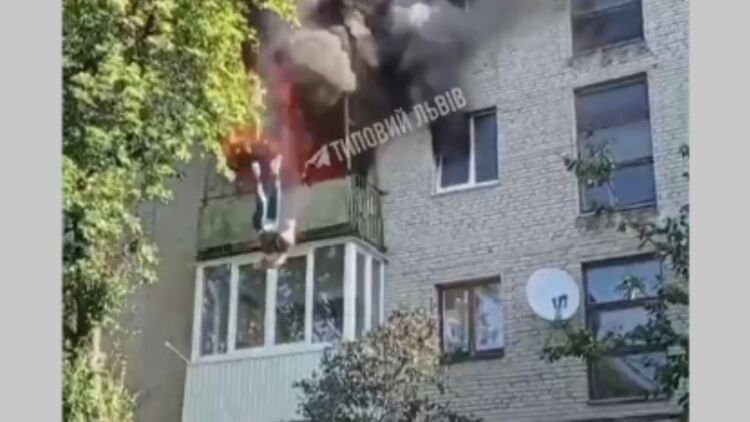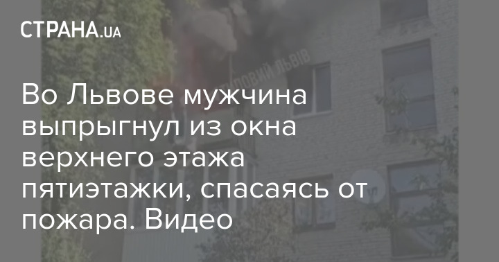 Во Львове мужчина выпрыгнул из окна верхнего этажа пятиэтажки, спасаясь от пожара. Видео