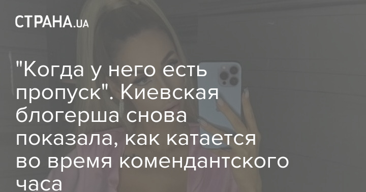 "Когда у него есть пропуск". Киевская блогерша снова показала, как катается во время комендантского часа