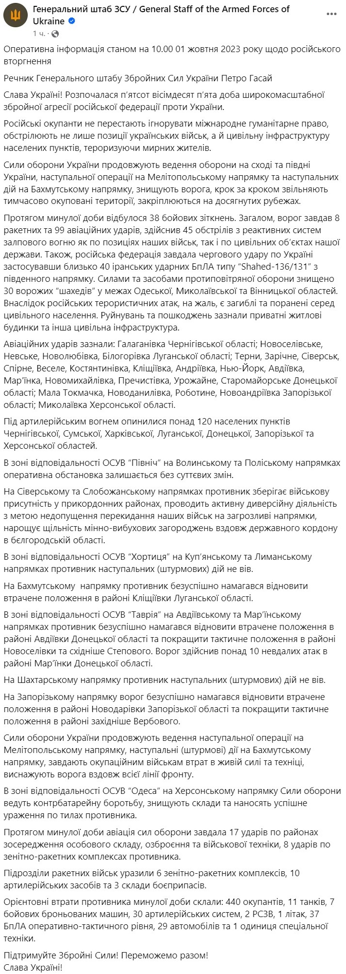 Война в Украине идет уже 585-й день. Мы следим за последними новостями и ключевыми событиями 1 октября 2023 года в обновляемом онлайне.
