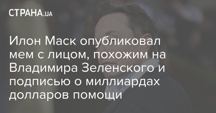 Илон Маск опубликовал мем с лицом, похожим на Владимира Зеленского и подписью о миллиардах долларов помощи
