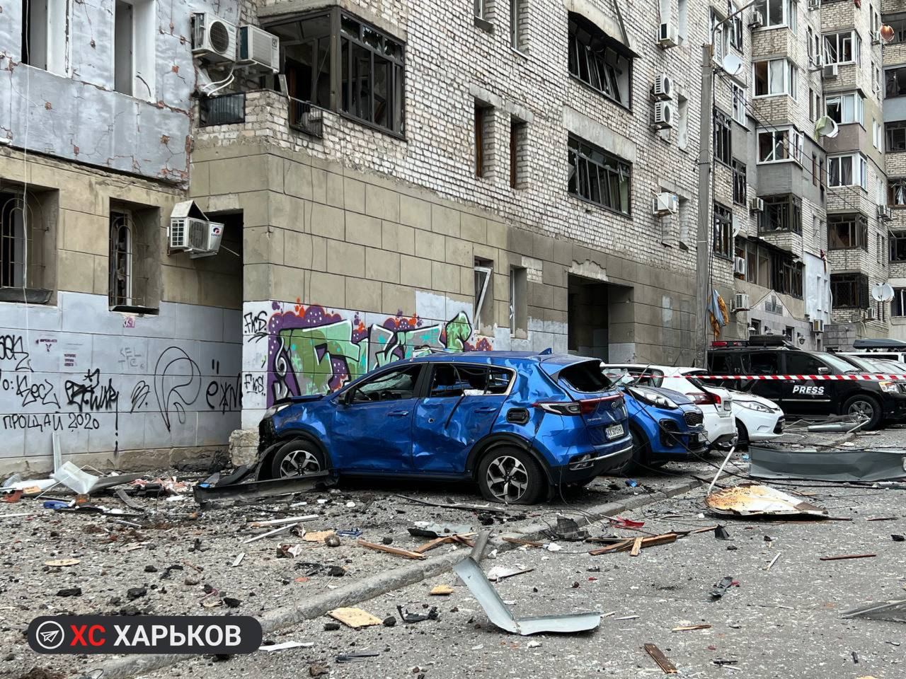 Глава Харьковской ОВА Олег Синегубов подтвердил информацию про удар двумя "Искандерами". Одна ракета упала на проезжую часть, в соседних домах выбиты окна. Вторая попала в трехэтажный жилой дом, там произошел пожар.