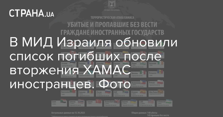В МИД Израиля обновили список убитых и пропавших без вести иностранцев во время вторжения ХАМАС.