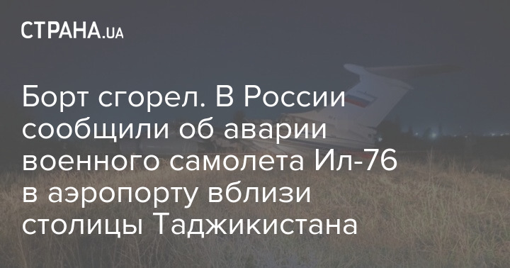 Российские Telegram-каналы сообщают об аварии военно-транспортного самолета РФ Ил-76МД в аэропорту Гиссар возле столицы Таджикистана Душанбе.