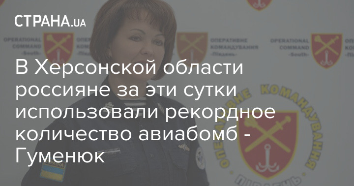 Спикер Сил обороны Юга Наталья Гуменюк сообщила, что в Херсонской области россияне за эти сутки использовали рекордное количество авиабомб.