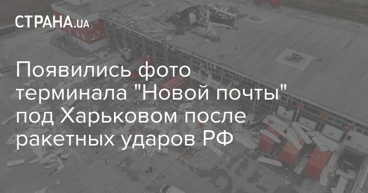Появились фото с беспилотника здания терминала "Новой почты" в Коротичах под Харьковом, разрушенного ракетным ударом РФ.