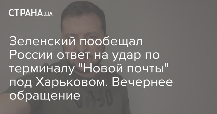 Президент Украины Владимир Зеленский записал традиционное вечернее обращение, в котором пообещал России ответ на удар по терминалу "Новой почты" под Харьковом, где погибли шесть и пострадали 17 человек.
