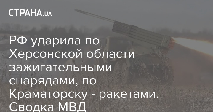 РФ ударила по Херсонской области зажигательными снарядами, по Краматорску - ракетами. Сводка МВД