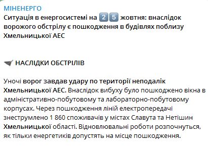 Стали известны подробности ночного удара РФ по Хмельницкой области. Он пришелся по территории рядом с АЭС.