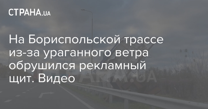 На Бориспольском шоссе из-за ветра обрушился рекламный щит. Скриншот видео