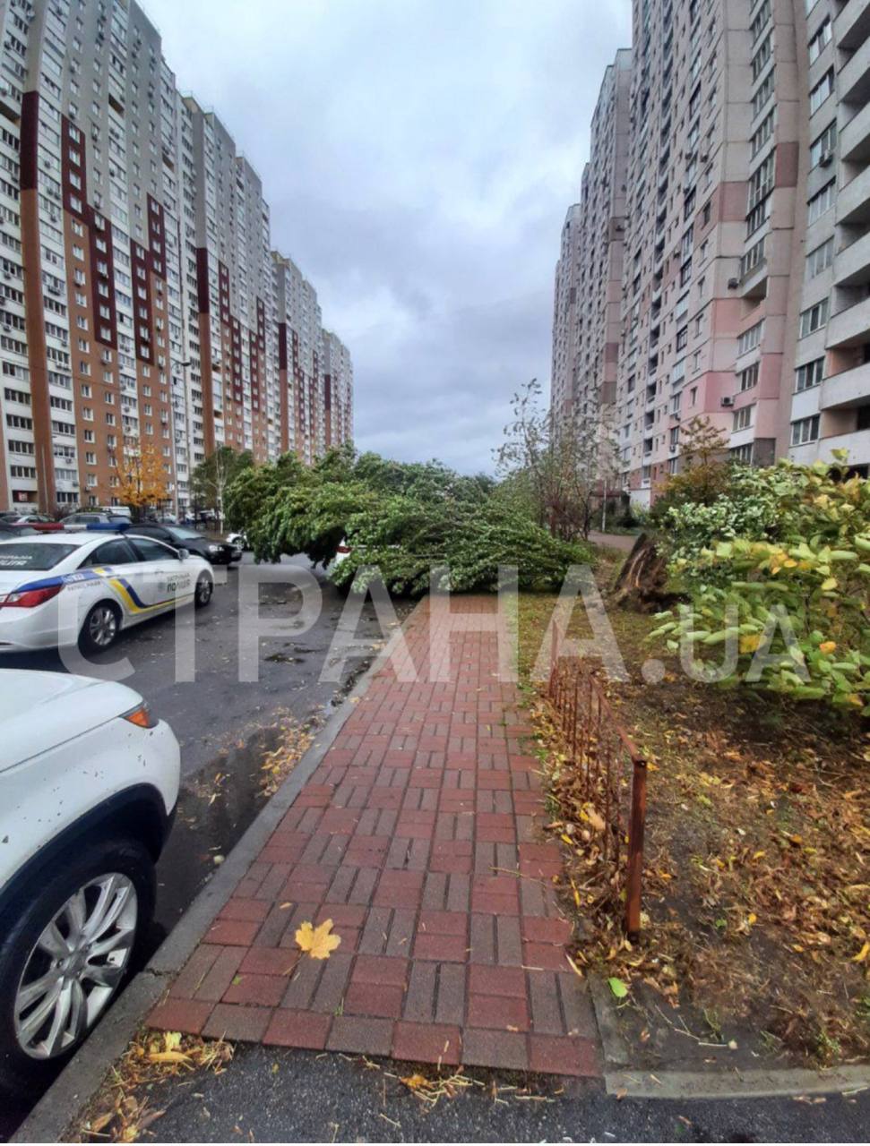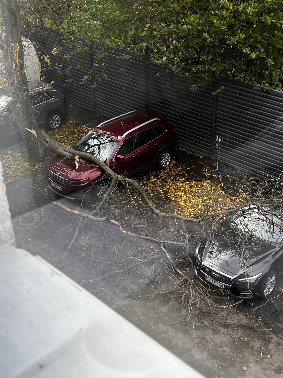 Пострадали частные автомобили киевлян, попавшие под рухнувшие деревья и оторванные ветром ветки.
