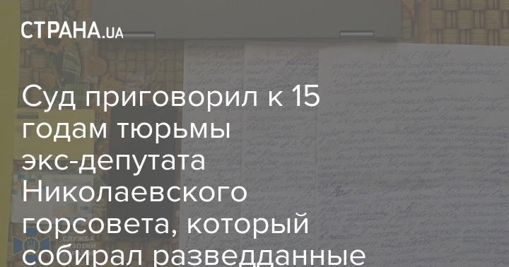 Суд приговорил бывшего депутата Николаевского горсовета к 15 годам тюрьмы за сотрудничество с РФ.