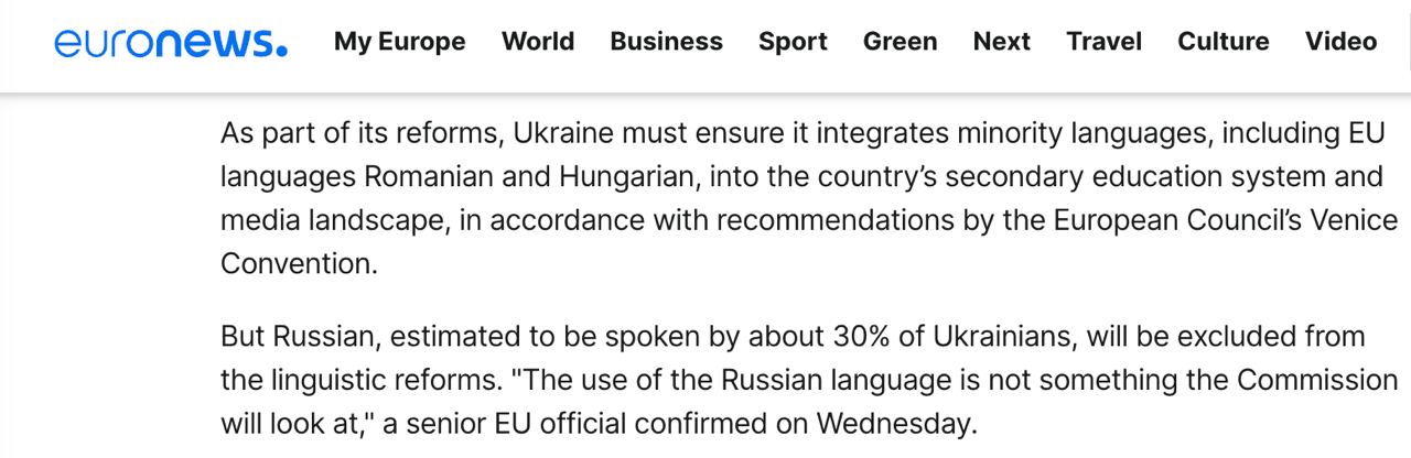 Еврокомиссия не будет учитывать ситуацию с русским языком для переговоров о вступлении Украины в ЕС - Euronews
