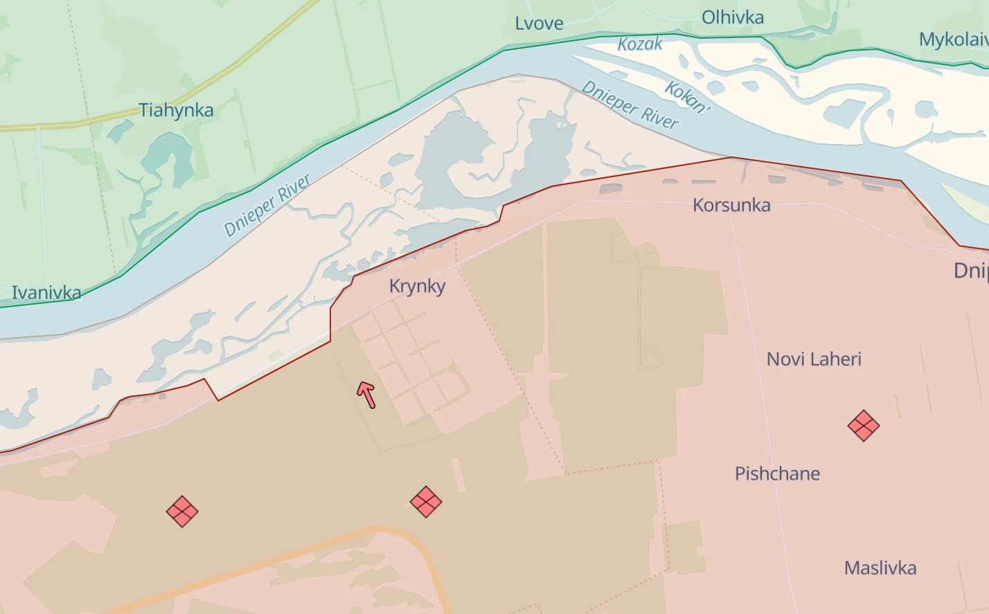 На карте Deep State Крынки находятся в зоне российского контроля.