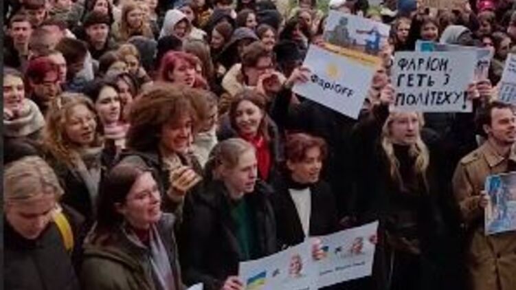 "Геть Фарион", - скандируют собравшиеся студенты.
