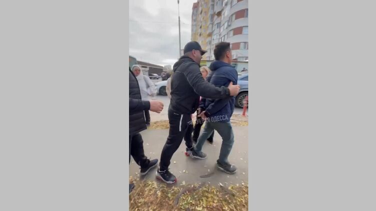 Прохожие в Одессе пытались помешать забрать мужчину, которого, вероятно, собирались увезти в военкомат.
