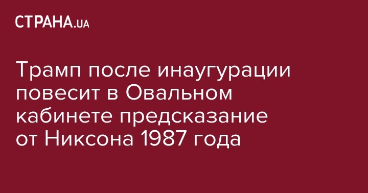 Новоизбранный президент США Дональд Трамп хочет после своей инаугурации повесить на стене в Овальном кабинете Белого дома письмо от экс-президента страны Ричарда Никсона с предсказанием победы миллиардера на президентских выборах. Об этом пишет Politico со ссылкой на ближайшее окружение Трампа.
