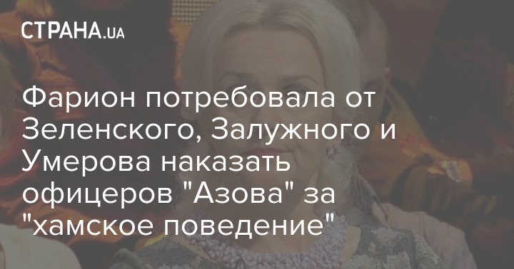 "Направила обращение к должностным лицам о необходимости принять меры в связи с хамским поведением заместителя командира 3-й ОШБр, майора ВСУ Максима Жорина и начальника штаба бригады "Азов" майора Богдана Кротевича в адрес профессора, доктора филологических наук, народного депутата Украины VII созыва Ирины Фарион, унижающие честь украинского офицера и бросающие тень на всю украинскую армию", - говорится в сообщении.