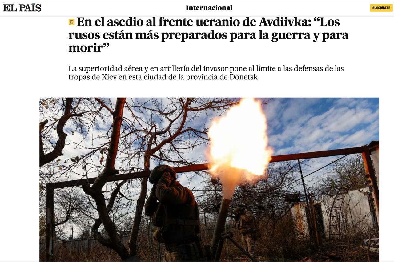 Как и Bild, El Pais указывает на то, что самая большая опасность под Авдеевкой сейчас - продвижение россиян к западу от железной дороги на севере от города. ВСУ защищают дорогу на возвышении, но армия РФ уже получила доступ к трехкилометровому участку.