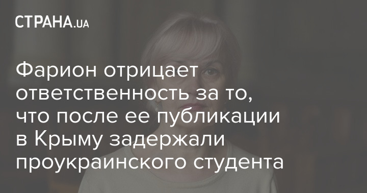Фарион отрицает ответственность за то, что после ее публикации в Крыму задержали проукраинского студента