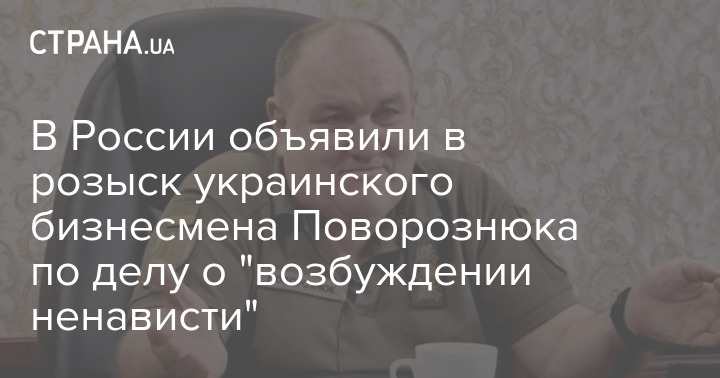 МВД России объявило в розыск украинского бизнесмена Александра Поворознюка по уголовной статье о "возбуждении ненависти в интернете с угрозой насилия".