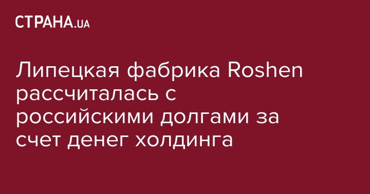Липецкая фабрика Roshen рассчиталась с российскими долгами за счет денег холдинга