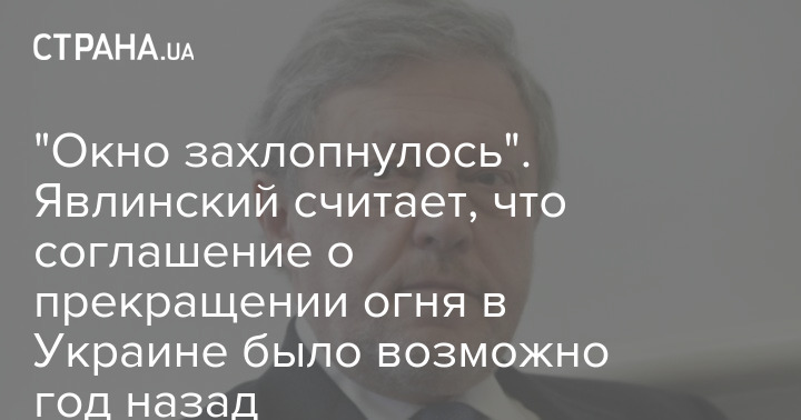 "Соглашение о прекращении огня критически важно было подписать еще год назад - в ноябре 2022 года - окно возможностей оставалось открытым как минимум до февраля 2023 года", – говорит Явлинский.